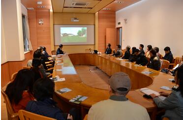 上图为座谈交流会会场,下图为加拿大特许专业会计师协会香港分会会长、香港海洋公园副行政总裁暨首席财务总监李绳宗先生(右一)向中山大学会计学系负责人介绍加拿大特许专业会计师协会的历史及发展现状。